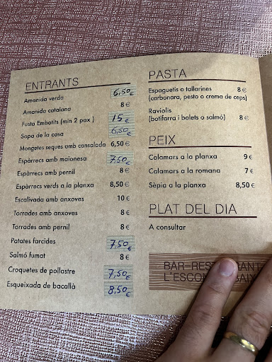 Relació qualitat preu excel·lent. Com a mÃnim fan menú diari (no sé si fan carta) que consta d'amanida compartida, primer, segon, postres, pa, vi i aigua. Crec recordar que uns 15 euros. El menjar també és totalment casolà . Res de l'altre món, però s'agraeix un simple plat de verdura o llenties guisades.