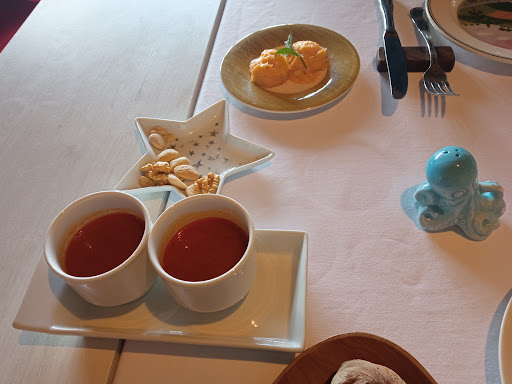 This time, we had: *Entrante: Tosta de Anchoas con Pisto, *Plato principal: Arroz el Señorito y Arroz con Pulpo, y *Postre: Picatostes con Helado 👍
