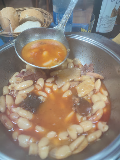 Comida rica, sabrosa, abundante y bien cocinada. Si ves el local desde fuera, no te llama para que entres, pero no sabes lo que te estás perdiendo al no entrar y probar su fabada asturiana (rica, con sabor al puchero de la abuela,tierna y buen producto) entramos por casualidad y porque una paisana nos lo recomendó y acertó al hacerlo. Ambiente cercano de bar de pueblo, sin grandes alardes y adornos, más bien algo descuidado en cuanto imagen con el techo con manchas, pero que no desmerece parar para comer allí. Precio-calidad- cantidad super recomendable y el trato del camarero que nos atendió fue perfecto, atento y servicial, que no servil. Volveremos si estamos por la zona. Gracias por la...