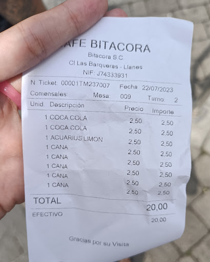 Vivo la mitad del año en Llanes desde hace más de 30 años. La cafetería Bitácora ha sido una referencia de buen trato, ambiente agradable y uno de los mejores sitios de Llanes para tomar una merienda o un desayuno o una cena ligera. Parece mentira que los propietarios arriesguen ese buen nombre y no se den cuenta de a quien ponen al cargo y expongan a sus clientes a recibir este trato....