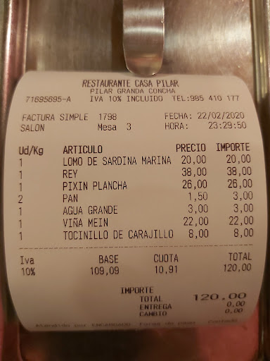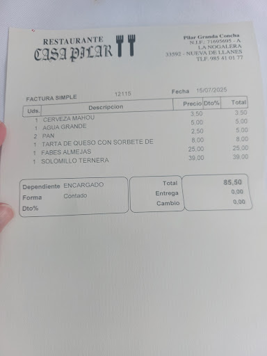 Read moreVolviendo en familia decidimos parar en este restaurante, que está cerca de los bufones de Pría, casi sin contar con ello, pero la visita no ha podido ser más satisfactoria, ya no tanto por el arroz con marisco suave y delicioso, ni por una lubina en ajada fresquísima y deliciosa… y unas croquetinas para el peque, hechas en el momento, suaves y deliciosas… ¿y los postres? Ay, los postres ¡mamina los postres! Posiblemente la mejor tarta de queso que he probado en mi vida (y han sido unas cuantas) un arroz con leche que parecía una mousse supersuave y delicioso… y el tocinillo de café… eso es un manjar de otros mundos, todo fue pura ambrosía. Todo esto, y no es menos importante, con un trato super amable y cercano, tanto que hasta pudimos charlar con Pilar, la dueña, super amable y encantadora. Sin dudarlo, Casa Pilar se queda en restaurante de cabecera y seguro que...