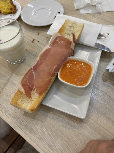 Read moreDe las peores experiencias gastronómicas. Fue todo un despropósito. Desde que pedimos nada fue bien. Pedimos dos tostadas con jamón y tomate y un cruasán a la plancha (lo trajeron tal cual y tuvimos que pedir que lo partieran a la mitad y lo tostaran). Dos veces tuvimos que devolver las tostadas. La primera vez las trajeron vacías, con dos paquetes, uno de matequilla y otro de mermelada… decimos que no es lo que hemos pedido y ni se disculpan. Nos traen de nuevo las tostadas con una sola loncha de jamón (adjunto foto) y ya me levanto y pregunto a la chica que si es así como sirven las tostadas de jamón y tomate. Me responde “No”, se las lleva sin disculparse, le añade otra loncha y el aceite y al volverlas a traer tampoco se disculpa. No he...
