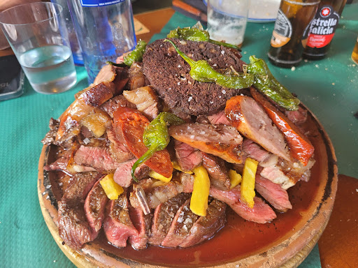 Algunos pidieron una sartenada, o un plato de carne a la brasa y cosas así, 8 de los 16 pedimos, unas croquetas de jamón, pulpo a la parrilla, una parrillada y 2 chuletones de supuesta vaca.