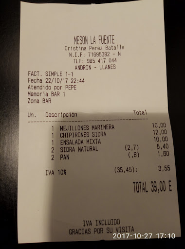 Read moreEs el mejor restaurante de Andriy situado en un lugar histórico junto a la antigua fuente pública que además era lavadero y a re aeropuerto cómo en.casi todos los pueblos de Asturias , de ahí el nombre. Es un lugar muy agradable , acogedor y tranquilo lo que lo hace romántico. La carta es muy correcta y el servicio estupendo con lo cual yo recomiendo un diálogo con el.camarero que acabará sirve dote el pescado más fresco del día y estamos en.puerto de mar. Yo siempre he comido muy bien pero seguro que si te empeñas y no pides coseno sino solo tu capricho, puede no.salirte tan bien. Precio correcto para el lugar calidad...