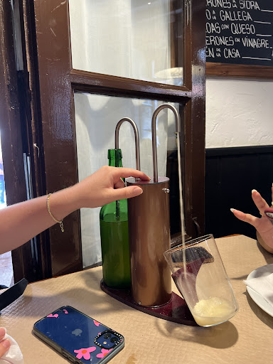 Read moreEstuve cenando el pasado viernes 13/10. Con respecto a la calidad y precio de la comida no tengo ninguna queja. Sin embargo, mi mala puntuacion tiene que ver con la atención que recibimos mi pareja y yo por parte de una empleada encargada de la lista de espera (una chica de pelo largo, moreno y con coleta). Te apuntan por orden de llegada y te llaman en alto cuando se libran las mesas. Tras 50 minutos esperando consumiendo una sidra dentro del local, nos dimos cuenta que nos había saltado el turno. Cuando le pregunté qué había ocurrido, me respondió de malas formas que nos había llamado varias veces cuando obviamente no era así, al menos dentro del local. Tras 15 minutos más de espera nos sentaron y en ningún momento se disculpó, dio ninguna explicación ni tuvo un gesto hacia nosotros. Un fallo lo tiene cualquiera, pero lo que nos sentó mal fue la reacción por su parte hacia nosotros (quizá por ser jóvenes), ya que con el resto de clientes se mostraba cordial. La comida estaba muy buena, pero este detalle hizo que nos fuésemos con mal...