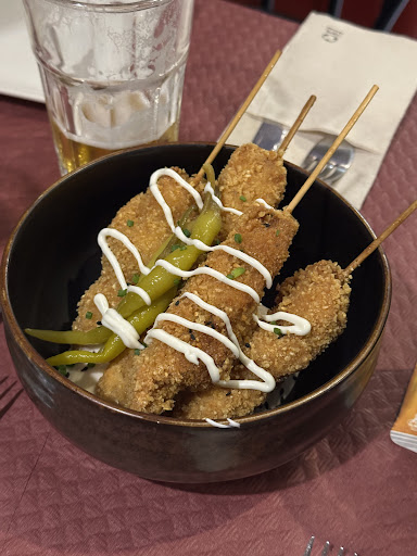 🍔 La burger, jugosa y con una combinación de ingredientes que la hacen irresistible. 🐙 Takoyakis, con un toque crujiente por fuera y suaves por dentro, sabrosos y adictivos. 🦐 Gamba roll picante, equilibrado y con el punto justo de intensidad que nos encantó. 🌭 El perrito estilo “chely”, potente y lleno de sabor, una vuelta de tuerca a un clásico. 🍢 Brocheta de pollo especiado con salsa agridulce, tierna, sabrosa y perfecta para cerrar la experiencia.
