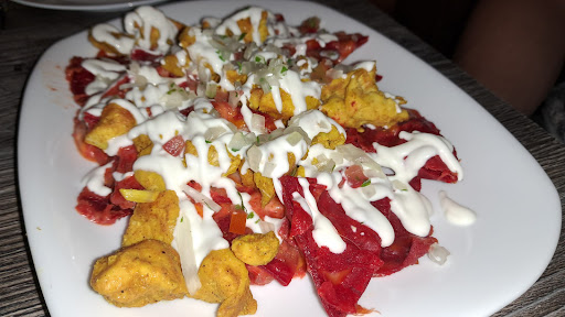 En cuanto a la comida los nachos estaban buenos, en cambio los tacos del pastor que me pedí yo, la carne de pollo estaba seca, además, ese plato lleva encima de cada taco un trozo, normalmente generoso de piña, en este caso uno de los tacos no tenia, el otro tenía un trozo minúsculo y el último (eran 3) un cuadradito más pequeño que un dado. Se lo comenté al camarero y me respondió que llevaban piña durante la receta (cosa que no es verdad) y no quiso ponerme lo que correspondía. Los platos de mis acompañantes estaban mejor pese a que todo lo que llevaba pollo estaba seco.