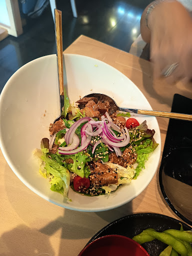 Hicimos nuestro pedido: dos entrantes, tres sets de sushi y yakisoba. Los entrantes llegaron rápido y estaban buenos, lo que nos relajó un poco. Sin embargo, cuando nos trajeron los dos primeros sets de sushi, pedimos wasabi a un camarero y luego a otro. Ambos vieron perfectamente que no tocábamos la comida porque estábamos esperando el wasabi, pero actuaron como si no fuera su problema… Esperamos 15 minutos hasta que tuvimos que pedirlo por tercera vez.