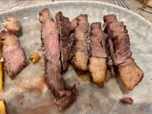 En primer lugar,decir que soy una persona sincera,si ayer me comi por 16 euros en sitges un menú buenisimo lo digo,y si vengo a un sitio como este,que el vino no baja de 27€ de media..espero CALIDAD. En primer lugar,no soporto los sitios donde no sirven las comidas/bebidas,pan etc..cuando toca..no puede ser que te sirvan unos caracoles y no te sirvan pan,o te falten las patatas de una longaniza..hay que seguir un orden!! Comer todos a la vez..que no se te enfrie un plato por esperar pan..en fin. Los puntos de la carne,a ver muy pijito y muy “chic” que te sirvan el entrecot sin hueso y cortado,pero si la foto que adjunto..es entrecot al “punto” que baje chicote y lo vea..cabe decir que nos sirvio el vino una niña que si fuera una discoteca le pedia el dni para comprobar que es mayor de edad..y debia ser la segunda botella que abria la verdad.. La comida estaba mala? NO Se corresponde a lo que PAGAS? NI DE BROMA. Y lo digo sin ningun “hate” pero si pones precios de pijos y políticos,que le calidad al menos sea en consecuencia,tanto en servicio como en producto. A dia de hoy NO RECOMENDADO.