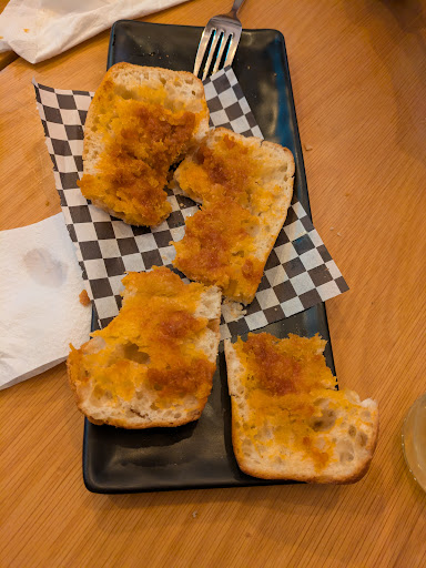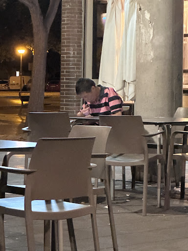 Fui a cenar con mi pareja y lamentablemente la experiencia fue muy decepcionante. Llegamos a las 21:30 y, aunque el lugar no estaba lleno, tardaron muchísimo en traernos las bebidas y en tomar nuestra orden. Finalmente, nos tomaron la nota a las 22:00hs aproximadamente (si no es más tarde). Pedimos un bocata de tortilla y un plato combinado. Aproximadamente 40 minutos después, le trajeron el plato a mi pareja, pero yo tuve que esperar 30 minutos más para recibir el mío. Para ese entonces, ya había terminado su comida. El plato combinado fue un desastre: el huevo frito estaba completamente quemado, las patatas horribles y, sinceramente, todo era incomible. Salimos del restaurante casi a la medianoche, así que si planeas cenar aquí, prepárate para esperar al menos cinco horas para disfrutar de tu comida. No puedo recomendar este lugar si buscan una cena...