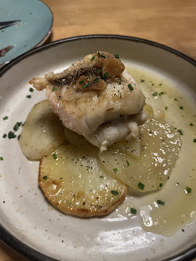 Tant els pèsols llàgrima amb ou poché, encenalls de pernil ibèric i tòfona, com el parmentier de patata, ou poché, gules i ceps, són una delícia. La truita d'escalivada i formatge blau està al punt i és força saborosa.