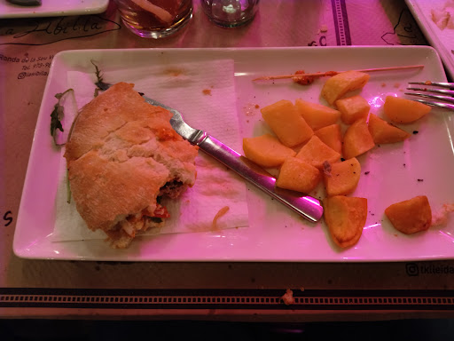 The staff was doing their best to be helpful. But my lack of Spanish and their lack of English made ordering a rare cheeseburger quite comical actually. But they tried. The food was ok until it came to the burger. The potatoes were actually very tasty. The little one had plain pasta. Can’t mess that up. Now for the burger. I’m not sure if they had to hunt down the cow or wait for the patty to thaw but I am pretty sure they forgot about it. I waited about 35 min for it. Everything else had come and we had almost finished eating when it arrived. And that was after asking about it. Which I know things are slow in Spain but come on. When it did arrive it had everything on it I didn’t want (I asked for no lettuce no onion) and it was cooked like a hockey puck. So I took one or two bites and that was it. Great...