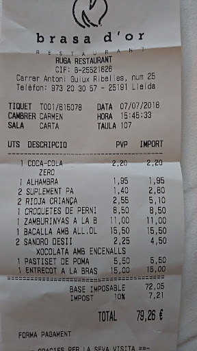 Read moreLa brasa d'or és sinònim de molt bona brasa🔥, sense cap mena de dubte una de les millors de la ciutat, en un local ampli i modern situat a la barriada dels Mangraners🌎 Menció especial a les mesures d'higiene envers el #covid19 🦠, senyalitzat i preparat al 💯%