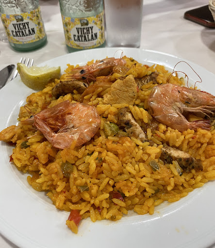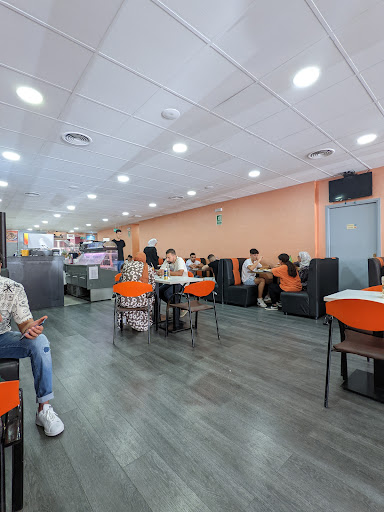 Read moreEstábamos buscando un menú barato de día y hemos acabado en esta cafeteria pensando que tendrían carta. En el restaurante tienen una muestra de unos treinta platos (igual que un bufet libre) pero luego lo que quieres comer lo pides al camarero. Cada plato tiene un precio determinado. Mi novio se ha pedido medio pollo con patatas que estaba muy bueno y yo una especie de revoltijo con berenjenas y aceitunas (era un poco picante) que era curioso y bueno y pasta con salsa, gambas y cangrejo que estaba bastante buena. El sitio es grande y adecuado para acoger a mucha gente aunque es muy ruidoso. El acceso al mismo es perfecto para cochecito y personas con...