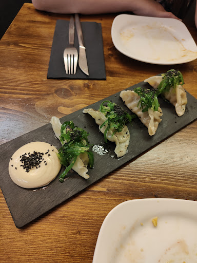 La comida… aquí me cuesta encontrar palabras sin emocionarme. Probamos la crema trufada, simplemente BRUTAL; las gyozas de verduras, tiernas, delicadas, con un sabor que te envuelve… Y entonces llegó la joya de la corona: el bao de cerdo. Dios mío… ¡qué explosión de sabor! Hacía tiempo que no probaba algo así, un bocado que te hace cerrar los ojos y quedarte en silencio para saborearlo al máximo.