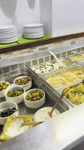 Fui con unos amigos, lo primero que senti fue tristeza al ver que su buffet libre eran apenas 8 cosas como huevos duros humus i cebolla cruda. Ademas la camarera me miro y con tono despectivo me dijo que solo un plato, asi que de buffet libre nada. Tuve que llorar por un trozo de pan. De primero habia o sopa o gazpacho, probé la sopa y aun siendo una racion pequeña dejé la mitad. De segundo me dijeron que habia tres platos al final fueron dos, unas hamburguesas con muy mala pinta y unos spaghettis con pesto pero sin albahaca... en fin este fue el plato que mas recordare porque 4 horas despues me repitió en el gimnasio. Nos trajeron dos botellas de agua, calientes, un pastel de queso tambien caliente... en fin no volvere ni lo recomendare, me parece increible que ese local este tan lleno me encataria ser su competencia, lo ponen muy facil, y reitero lo peor la actitud de sus trabajadores con las...