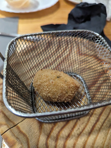 Read moreFuimos a cenar con mi pareja y el pequeño. Yo me pedí una tostada con escalivada y una croqueta de bacalao. Mi pareja se pidió una pizza vegetariana y ambos compartimos unas bravas Tasta i Atipa't. El pequeñajo comió de todo un poco. Mi tostada estaba bien, nada destacable. Me gustó mucho la croqueta, ya que no era cremosa y notabas mejor el pescado (mucho mejor así). Las bravas fueron espectaculares, ¡la verdad! Tanto la patata como la salsa. Mi pareja disfrutó mucho con la pizza, son muy muy finas de masa y a él esto le encanta. El chico que nos atendió fue muy amable aunque al principio tardó un poco en darnos el menú. Pedimos de postre yogur natural para el niño y nos pusieron una copa de yogurt La Fageda a granel. Bueno, este yogurt es sublime. Más un agua, una Cocacola y una cerveza 0,0...