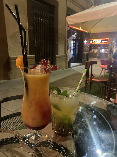 Dentro tiene una barra bastante larga donde atienden varios camareros a la vez. La atención es espectacular, te sientes recibido desde el seguridad. En la noche saben preparar los pedidos en tiempo razonable, no nos ha tocado esperar mucho y no he visto que la gente se impaciente por su trago. La carta tiene variedad de cócteles, el bar está bien surtido, se nota el cuidado en preparar las copas, si necesitas, hay un camarero que te asesora en escoger tu bebida con un toque de complicidad poco común. Nos recomendaron un chupito ahumado que nos encantó.