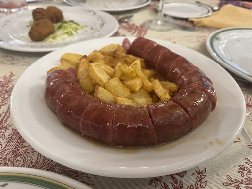 Fomos em casal, num domingo de janeiro as 16h. Na ocasião, o restaurante era apenas ocupada por uma outra mesa, com um casal e uma criança, que claramente são frequentadores assíduos. O lugar nos pareceu encantador. Fomos servidos (e muito bem servidos) pelo Chiqui, que mais tarde viemos descobrir ser o proprietário. Além de ser ótimo anfitrião, Chiqui nos proporcionou boas conversas, boas histórias sobre o lugar e a cidade e nos fez sentir muito bem recebidas, tornando a experiência muito mais especial e única. Ele nos orientou a pedir meias porções, para que pudéssemos provar mais variedades, e assim, acertadamente o fizemos. De boas vindas Chiqui nos serviu com duas fatias de jamón e duas fatias de queijo, além de tremoços e azeitonas. Para almoçar pedimos: Ensalada de anchoas e queso fresco (super bem temperada), Setas Calderetas (Chiqui nos indicou como sendo um prato típico da região. Era delicioso, feito de Shitake e uma espécie de cogumelos chamada cardo que não conhecíamos e eé cultivado na região.) Piruletas de langostinos ( esse é o que menos recomendamos porque não há nada demais). salchichas cocidas ao vino (outro prato típico da região. Salsichas caseiras, deliciosas, assim como a batata frita. super saboroso.)