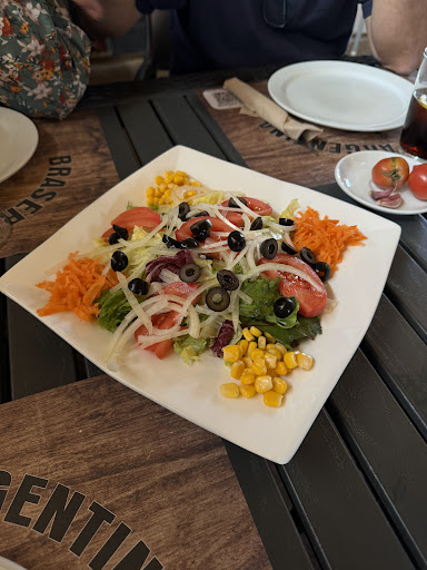 Read moreTodo iba bien hasta que llegó la parrillada... mazorca maíz muy sabrosa y con toque bueno de parrilla, salsa chimichurri muy espaciada y bien equilibrada, empanadas espectaculares el relleno jugoso y la masa perfecta. Los macarrones de las niñas correctos con salsa y carne fresca. El pollo de segundo de las niñas de lo mejores q comi últimamente a la parrilla. En nuestros segundos queria pedir entraña y entrecot pero pregunte sobre parrillada y me dijeron q si había un trozo de entraña entre otros. Cuando llega ni había entraña y la mayoría era cortes con hueso incomibles por si alto contenido en nervios y grasa... sin exagerar una merma del 50% en esa parrillada. Lo único la salchicha y los lomos de cerdo.... una pena pk son 21eur totalmente desperdiciados. Sin duda pidan entrecot o entraña o solomillo solos NUNCA esa parrillada. El postre excelente sobretodo el pastel de queso. El flam solo valía pena el pegote de dulce de leche ya que parecía de los de sobre muy homogéneo y gelatinoso. La otra sorpresa al final fue que cobrarán 1eur por el queso (polvos nada especial) de los macarrones que ya valían 7.5eur... nunca visto en otros sitios. CONCLUSIÓN: Este mismo restaurante si pides unas empanadas y un entrecot/entraña/corte argentino sería de 4.5estrellas... No Tuve suerte ni lo supieron arreglar ya que bien q se lo comenté...