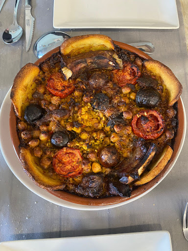 Pero lo que de verdad se robó el show fue el arroz al horno. Llegó a la mesa con ese color dorado tan característico, acompañado de rodajas de patata asada, costillas, garbanzos y morcilla. ¡Una maravilla! El arroz tenía la textura perfecta, suelto y con ese toque ligeramente crujiente en la parte superior. El sabor ahumado que le daba el horno a leña era inconfundible, y cada ingrediente estaba cocinado a la perfección, aportando su parte al conjunto de manera magistral. Se notaba el mimo y la tradición en cada detalle.