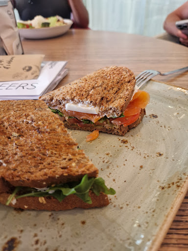 The salmon panini was good and the cesear salod too. But to us it was weird that there was 1 scoop of ice cream added...