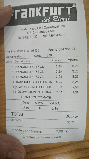 Tengo segunda residencia en Lloret de Mar y he ido 3 veces al Frankfurt del rieral. La primera, fui recomendado por mis vecinos y de hecho, fui con ellos. Antes de nada, decir que los bocatas están buenos y se hacen al momento, los precios son correctos.