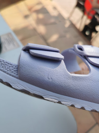 When I walked into the cafe there was a long queue and I had to wait briefly in the doorway. It was an automatic door. Normally, such doors should not close when people are in the doorway. But this door didn‘t work properly and therefore closed and squeezed me in. After I freed myself, I noticed that the bottom of the door had already been broken and the broken surface made a crack in my shoe. If I hadn't been wearing a shoe, it might have cut my foot. That's super dangerous, especially for people wearing open shoes and small children. I'm also really annoyed that my shoe is now damaged. (After all, it's an original Birkenstock for 60€.)