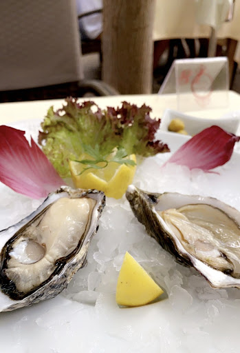 Had oysters, which came in a ball with salad leaves, like i was in the transported to the 80âs. Oysters was fine and only served with lemon.