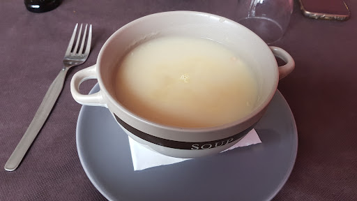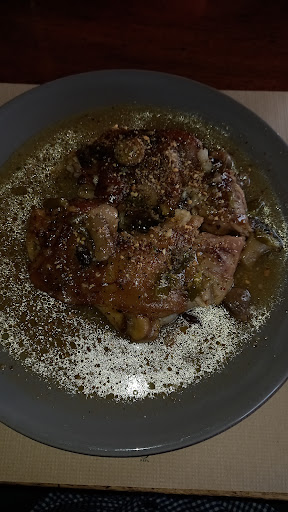 Read moreBons peus de porc guisats amb bolets (de cultiu) i picada d'ametlles, all i julivert, tot i sortir no gaire calents (escalfats amb microones). També caldria espessir un xic més la salsa. Amanideta de ceba (de Figueres), tomàquet (poma ple normalet) i olives (correctes malgrat el pinyol massa gran). Al servei de taula caldria posar cetrilleres i no utilitzar sal en sobres de paper i vinagre en dispensadors de plàstic individuals Relació qualitat-quantitat-preu regular.