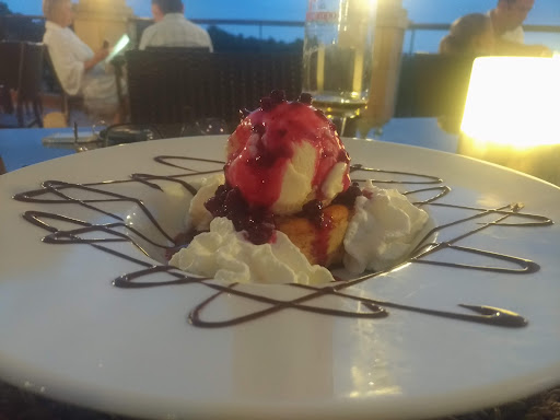Read moreRundum wirklich super. Sehr netter aufmerksamer Service, klasse Essen, super Aussicht. Das Filetsteak war wirklich gut, zart und klasse gesalzen im Geschmack, leckere Gemüsebeilagen, leckere Vorspeisenplatte, sogar die Hähnchennuggets für die Kinder sind wirklich gut und lecker. Als Vorspeise das klassische Brot/Baguette ist super, Alioli etwas anders mit geräuchertem Paprika oder so gewürzt , nicht ganz unser Geschmack aber einfach geschmackssache und meckern auf hohem Niveau :-). Zum Alioli gibt’s noch eine Art Tomaten Bruschetta Topping - und das ist einfach super saftig lecker. Hausgemachte Eiscreme als Dessert, cremig lecker, lohnt sich wirklich mehr als jedes sonstige Fertigdessert in anderen Lokalen. Man sitzt nicht so eng an den anderen Tischen (draußen) was wirklich angenehm ist. Die ganze Anlage ist sauber gepflegt und aufgeräumt. Die ein oder andere Eidechse schaut mal an den Mauern vorbei und mit dem Blick auf die Pferde gibt es auch für Kinder einiges zu sehen. Beilagen/Portionen fallen nicht riesig aus, mit Vorspeisen wird man aber gut satt und das Preis-Leistungs-Verhältnis stimmt bei der Qualität...
