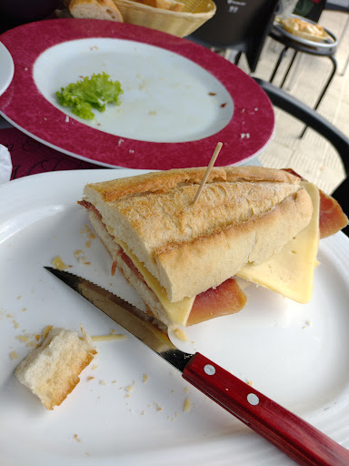 Pleasant cafe/bar. On a rainy Sunday afternoon, the place had many tables of men playing cards. However, staff was very attentive to us and we were made to feel welcome. We were there during a time when the kitchen was closed, so we just ordered drinks. But we were very happy to each receive a delicious tapa of a small slice of Tortilla Espanol and a small slice of bread. Great value, as our total check was under 4 Euro for three drinks. (Draft beer, glass of wine &...