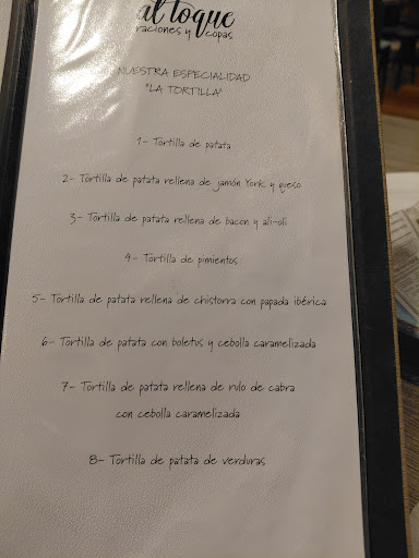 Read moreExperiencia muy decepcionante. Fuimos a tomar algo ya que se encuentra justo al lado del hotel. Resulta que su especialidad son las tortillas pero las que aparecían en la carta que teníamos en la mesa según nos dijo la camarera, una chica latina, solo eran para llevar. En la carta no aparecía el precio, le preguntamos cuánto costaba y no lo sabía. Nos muestra una hoja que tenían en la barra y resulta que las de llevar eran más baratas que las de tomar ahí que además no podíamos pedir. En la carta solo aparecían unos cuantos bocadillos y vinos. Nos pedimos un bocadillo y al cabo de un rato nos dice que va a tardar "porque tienen que hacer el pan" !!!!!!!. Mientras nos comíamos el mísero bocadillo en la mesa les sirven una ensalada que no aparece en la carta que teníamos y al ir a pagar mi pareja se lo comenta a la camarera y nos dice que allí hay mucha comida y otra chica nos muestra otra carta con muchos platos y la camarera que nos atendía dice con sus santas narices que se lo teníamos que haber dicho, cómo si superamos lo que allí sirven siendo nuestra primera, y ya digo que última vez en este sitio. La otra chica le dije que como lo íbamos a saber. En fin un servicio deplorable por parte de esta camarera que acabo de ver qué ya se han quejado en otras reseñas. Si yo fuera su jefe esta chica hacia tiempo que ya no...