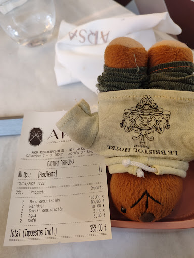 Hemos ido a comer dos personas, hoy, domingo 13 de abril de 2025 a las 14:30, previa reserva online. En realidad es la segunda vez que venimos a Arsa a comer, ya que estuvimos comiendo hace varios meses, cuando este restaurante llevaba poco tiempo abierto en Logroño y había otro menú de degustación. Nos apetecía volver y como me enteré de que habían cambiado el menú de degustación, pensamos que sería buena idea regresar para probar el nuevo menú.