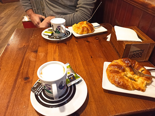 Read moreFuimos a desayunar ahí porque nos pareció un lugar con una bonita terraza y un interior rústico. Pedimos unos croissant tostados, y no le funciona o no tenia tostadora. Entonces solo los calentó en una especie de horno. Luego le pedimos mermelada y nada no tenia. Y al cortar el croissant estaba un poco crudo por dentro. El café que nos sirvieron era súper pequeño. Y el volumen de la tele estaba alto. Y por un colacao + croissant + café + otro croissant nos...