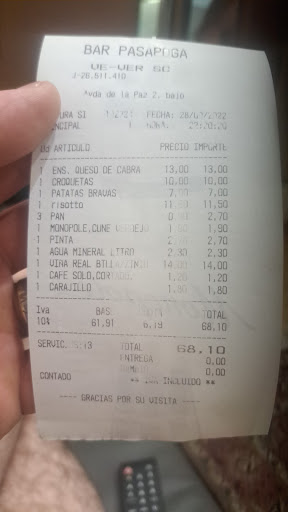 Read more2,70€ por tres trozos de pan que no pedimos. 7€ por unas patatas bravas crudas. El rissoto muy flojo, textura de arroz con leche, casi 12€. Lo demás bien. Sin carta, sin lista de precios... En definitiva, precios muy altos y el trato por parte de las camareras poco profesional y antipático. Turno de noche. (Referente a la respuesta: Hay que ofrecer el pan antes de servirlo y especificar que se va a cobrar. No es un delito pedir un vino barato. En la rioja todos los vinos son buenos, solo pedía el menos caro, 14€ la botella que tomamos y era el "vino barato". Pedir las salsas a parte de las bravas tampoco es delito, ibamos con una niña de 8 años y el problema de cambiarlas fue porque lllevaban salsa de tomate y habia alergia al tomate, no sabiamos que lo llevaba. Pedimos el picante a parte y de inicio vino con la mayonesa y salsa de tomate puesto. Si usted se pone en mi lugar vería el servicio poco profesional y deficiente. Normal que defienda su postura por lo que le puede repercutir una mala reseña y no soy de escribir reseñas. Esto es para que los nuevos clientes vayan preparados y no se lleven la sorpresa que nos...