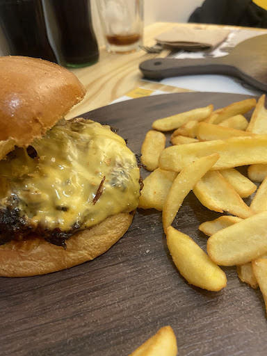 En resumen, si estás buscando un restaurante con buena ubicación, ambiente agradable y un personal amable, este puede ser una buena opción. Recomiendo probar algunos de los entrantes, aunque las hamburguesas no fueron tan impresionantes a mi parecer....