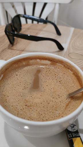 Fui a tomar un café porque tenían de especialidad. La cuestión es que le pregunto y solo hay dos a elegir y uno de ellos solo se sirve para llevar... Pedí un flat white del único café que podía tomar, un Kenia, que lo tengo comprado y están muy buenos. Al parecer después de hacerlo lo dejó en la barra, dando por hecho que yo iría y lo cogería, pero primero ni me di cuenta y segundo estaba hablando con mi pareja. Poco después se acerca coge y el café y me dice,( toma el café, que se te va a enfriar en la barra). Igual había que recogerlo, pero como no me dijo nada en ningún momento pues ahí quedó... La cuestión es que cuando veo mi flat white veo un café que no tiene absolutamente nada de crema ni leche texturizada. Por lo que, o no tenía ni idea de que era un flat white o pasó de hacerme lo que le pedí. Si me hubiera dicho que no sabía lo que era no hubiera pasado nada, todos hemos empezado sin saber de todo y le hubiera pedido otra cosa, pero si realmente sabía lo que era, deberia hacer un curso de barista porque deja bastante que desear... Estaba demasiado caliente y sabía quemado y no me voy a extender más, os dejo una foto a...