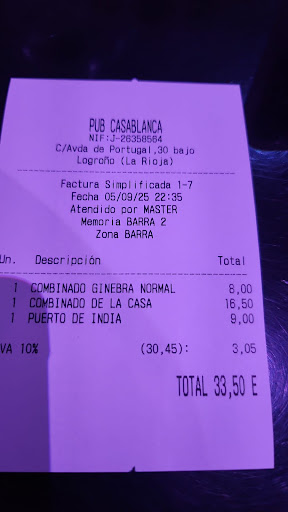 Pedimos 3 gintonics, 1 de puerto de indias 1 de seagrans y 1 de monkeys, el de puerto y el de seagrans, perfectos con sus cantidades justas, pero en el de monkeys, para mi sorpresa sacó un minitapon y lo llenó por la mitad, lo echó en la copa pero no llegaba ni a mojar la copa, le dije que echase un poco mas por favor, y le echó un chorrito minusculo, que casi se evapora al echarlo, flipé porque en vez de un gintonic, iba a ser una tonica con unas gotitas de ginebra. No quise insistir y al final me tomé la tonica que no llevaba practicamente ginebra, de lo poco que habia echado, era imperceptible., muy decepcionante para un lugar de copas no poder tomar un gintonic normal. Mi sorpresa fue al llegar la nota, en bilbao lo tomo normalmente por 9-10 euros, y ese dia me habia tomado uno con su medida justa en haro, y me habian cobrado 9 Aquí, me metieron para el cuerpo 18.15 (16.50 + iva) por una tonica con gotitas de ginebra, ....la clavada mas grande de mi vida. y tengo muchos años No dije nada porque invitaba mi amigo, pero vamos, que me parecio una pasada Mi consejo es que vayas, es un sitio superchulo, pero mucho cuidado con pedir una ginebra premium , que os arruinan la noche. Llevo 5 años tomando gintonic de monkeys, y la cobrada mas grande ha sido en bilbao en el hotel domine, una terraza de un 4* en el centro de bilbao que me cobraron 12 euros del ala, eso si, con la ginebra necesaria., pero 18.15 es increible.....ni en times square Anda que no se sacan partida a los minidedales, y si te van a pegar semejante palo, deberian avisar, no te pueden meter 20 pavos por un cubata sin ginebra, sin avisar,...