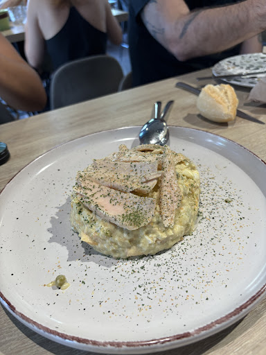 Read moreExperiencia sensacional. El local está muy chulo, es moderno y tranquilo. Los camareros son muy amables y cercanos. Íbamos buscando un lugar donde cenar cerca de casa y éste al que no habíamos entrado más que para desayunar un día fue el “afortunado”. Nos atendió un señor muy agradable que nos tomó la comanda rápidamente. Estuvimos un buen rato esperando porque no llegaba la comida, pero resulta que había sido porque no había llegado el pedido a cocina por un error (cosa que me creo perfectamente porque la otra vez que vinimos lo sacaron rapidísimo). Para compensar el retraso, no nos cobraron las dos botellas agua que pedimos. Después del aviso, llegó la comida en un pispás. Las raciones eran abundantes y súper sabrosas. Quedamos más que satisfechos porque la espera mereció la pena. Recomiendo los tacos, que sin duda estaban espectaculares (como todo en general)....