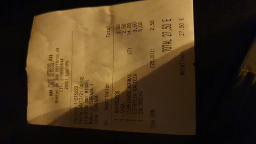 Read moreBuenas El comportamiento y profesionalidad del camarero y camarera de la terraza, es patético, irrespetuoso… Nos sirven las copas, y nos ponen unas pocas gominolas. Cuando pido q nos cobren las copas, la solícito, por favor, que traigan unas pocas más y q nos las cobren. Cuando trae la vuelta la camarera, dice q no hay que se han acabado. Entonces se lo pedimos al camarero, y cuando las tira encima de la mesa nos contesta, a ver si les dejamos ya tranquilos que llevamos toda la noche igual. Para acto seguido ponerse los dos a reírse mirando hacia nuestra mesa, desde la puerta del local. Penoso, y más en Logroño, una ciudad que siempre nos ha acogido de 10. Nunca jamás una pega. Vamos varias veces al año, pero aquí no volveremos a parar, ni nadie q...