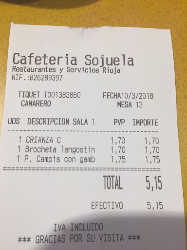 Read moreLa cafetería no está mal, precios normales, café normal y todo lo que puede ofrecer una cafetería de barrio. Eso sí, el trato y la simpatía del camarero, así como su educación, dejan muchísimo que desear. Es incapaz de decir un simple "adiós" aunque le insistas dos veces, por si no te había oído a la primera. Y un buenas tardes o un gracias creo que sea imposible de que salga de su boca. Por compromiso, he ido esta semana dos veces, no creo que vuelva. Bares en los que te atienden con una sonrisa sobran en los alrededores y no te cobran un plus por decir buenas tardes.