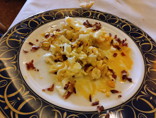 estuvimos en el restaurante el domingo pasado. Mi marido tomó un menú especial, yo y mis hijos pedimos unas croquetas y rabas de entrantes, de segundo pedimos dos raciones de alubias con sacramentos para los tres. Mi hijo pequeño de 5 años no probó las alubias, mi hija solo probó las alubias y yo comí dos platos de alubias. El recipiente nos lo dejo en la mesa para que fuésemos comiendo lo que quisiéramos, como casi no comimos ni la mitad le pedí a la señora que nos atendió si nos los podía poner para llevar. En ese momento la señora se puso a hablarme de muy malas maneras, me dijo que en ese recipiente nos había sacado más de una ración de alubias y a ver si yo me quería llevar el resto. Me quede helada, en ese momento le respondí que habíamos pedido dos raciones a lo que ella contestó que también había más de dos raciones. Yo le respondí que no entendía esa actitud porque simplemente me quería llevar la comida que no comieron mis hijos y creía que estaba en mi derecho (porque se supone que lo he pagado y además lo van a echar a la basura). Ella insistió que el cocinero puso más ración de la que pedimos y que eso no funcionaba así. Conclusión, las alubias entiendo que las vuelven a servir o echarlas a la cazuela para que se las coma el siguiente (tema que sanitariamente dudo que se pueda hacer con un perolo que ha estado en una mesa durante 1hora pudiendo tener restos de pan, saliva de la gente que está cerca de la mesa…) por otra parte el trato fue muy malo, nos trató mal, nos contestó de muy malas maneras lo cual nos hizo sentir muy violentados. Acto seguido mi marido se pidió el postre que venía en su menú, unas torrijas que estaban literalmente calcinadas. Era tal el malestar por seguir estando allí que no dijimos nada, pagamos...