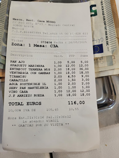 La pasada Semana Santa, recibí la visita de unos parientes que vinieron a ver qué tal era el ambiente por esta fecha. Yo les recomendé comer en Los Musso, esperando que se llevaran una buena experiencia. Al pagar con tarjeta parece hubo un fallo de lectura y el camarero les pidió que volvieran a pasarla. Una anécdota, sin más. Al día siguiente se dan cuenta de que han cargado dos veces el importe (unos 55 eur aprox). Bueno, no hay problema más allá de ir a comunicarlo. Con el extracto digital como justificante encuentran al mismo camarero en terraza, quien recuerda la situación perfectamente. Muy amable y profesionalmente se la traslada al jefe. Éste sin embargo, no es en ninguno de los dos aspectos como su empleado. Sale y les dice que él a nivel de contabilidad tiene efectivamente dos abonos del mismo importe a escaso tiempo de diferencia. Solo que en uno le aparece el nº de tarjeta correcto, y en otro una numeración que no se corresponde con ninguna tarjeta y que , por tanto, no se lo devuelve. Que buenas tardes. Quedándose con 110 euros.