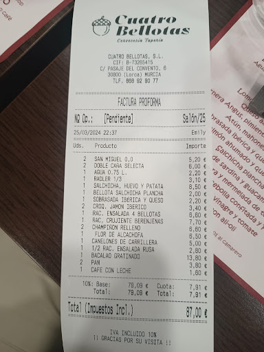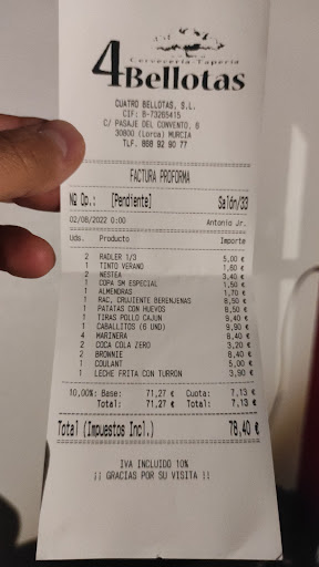 Read moreMuy amables todos los camareros y muy profesionales, siempre pendientes, todos los platos ordenados y perfectos. Comimos patatas bravas (son las mejores del mundo mundial, mis favoritas desde hace muchos años), croquetas, empanadillas fritas super buenas, platos de patatas, huevos y jamón, berenjenas (crujientes y con la miel ideales), ventresca de atún, solomillo, ensaladas 4 bellotas,... Fuimos 13 personas a comer, todos los platos generosos y bien repartidos en la mesa para que todo el mundo pudiera alcanzar con facilidad. La comida es de calidad y el precio muy bueno. El local es acogedor y muy cómodo. Todo de 10, estaba todo riquísimo. Les ha gustado a todos mis invitados, han estado comentando lo bueno que estaba y ha quedado muy bien el menú para la celebración. Sitio ideal para cualquier invitación en el centro de Lorca y quedar genial, la comida está buenísima y hay variedad de platos y de precios. Siempre es el primer sitio en el que pienso para ir a cenar o comer. Si vienes a conocer Lorca sería un acierto...