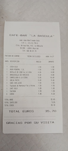 Read moreVengo todas las semanas, un punto recomendado para la gastronomía. De los bares que ya no quedan, cocina tradicional y espectacular. El servicio y trato inmejorable. Si quieres comer bien y no que te claven ven a la báscula. Y las manitas de cerdo las mejores que he probado después de las de mi madre. Pero a destacar la atención de los camareros y dueños y la mano de la cocinera. Todo limpio y muy...