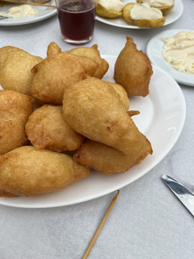 Read moreMuy buena opción. Hay dos zonas, la de la izquierda es de autoservicio y un poco más económica, la de la derecha vienen a servirte a mesa. A nosotros nos atendieron muy rápido en la zona con camareros, pero fuimos temprano sabiendo que después se monta mucha cola para entrar. Cenamos súper bien y a muy buen precio, unos 13 € por cabeza. Pedimos bacalaos (un poco salados pero buenos y de buen tamaño), tortitas de camarón con ajo (es un plato con seis, muy ricas) montadito de queso y tomate a la plancha (buen tamaño), un plato de michirones mediano (sin más, no son especialmente maravillosos), patatas con ajo (buen tamaño y cantidad de ajo), natillas arroz con leche y milhojas (de los postres sólo recomiendo la milhojas, el resto son literalmente el envase de plástico del súper de marca Reina, lo que me pareció increíblemente cutre). El espacio es súper grande y es fresco para la época del año, lo único es que hay algunas moscas. Para mí mejoraría bastante si tuviera más opciones vegetarianas y...