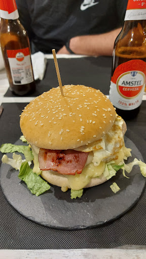 Read moreBuen sitio. Muy agradable. Aperitivos muy ricos en general.... los típicos reclutas, pulguitas con lomo y tomate "picante".... no, no pican. Los demás todos buenísimos. Pintas de Cerveza muy fresca y buena. Se quedaron sin hielo para el tinto o los refrescos, algo puntual supongo... nos puede pasar a cualquiera. No pasa nada. Las hamburguesas muy sabrosas. La ibérica con jamón deliciosa, muy suave. Una pega, No esperaba que cortaran el jamón especialmente para la hamburguesa, quizás sí una buena loncha que le diera sabor, pero los típicos tacos pequeños aparentemente estuchados del supermercado.... lo siento, pero eso es para el gazpacho. No modificaban el sabor de la hamburguesa ni aportaban nada. Las pizzas muy buenas también, bien rellenas y finas. Los postres es de lo mejor. Tarta de queso, 3 chocolates, de zanahoria, 3 quesos con miel.... todos buenísimos. Muy buen servicio y buenos precios. Repetiría? Claro. Pero no con esa hamburguesa. Lo recomiendo? X supuesto. Muchas más cosas buenas que...