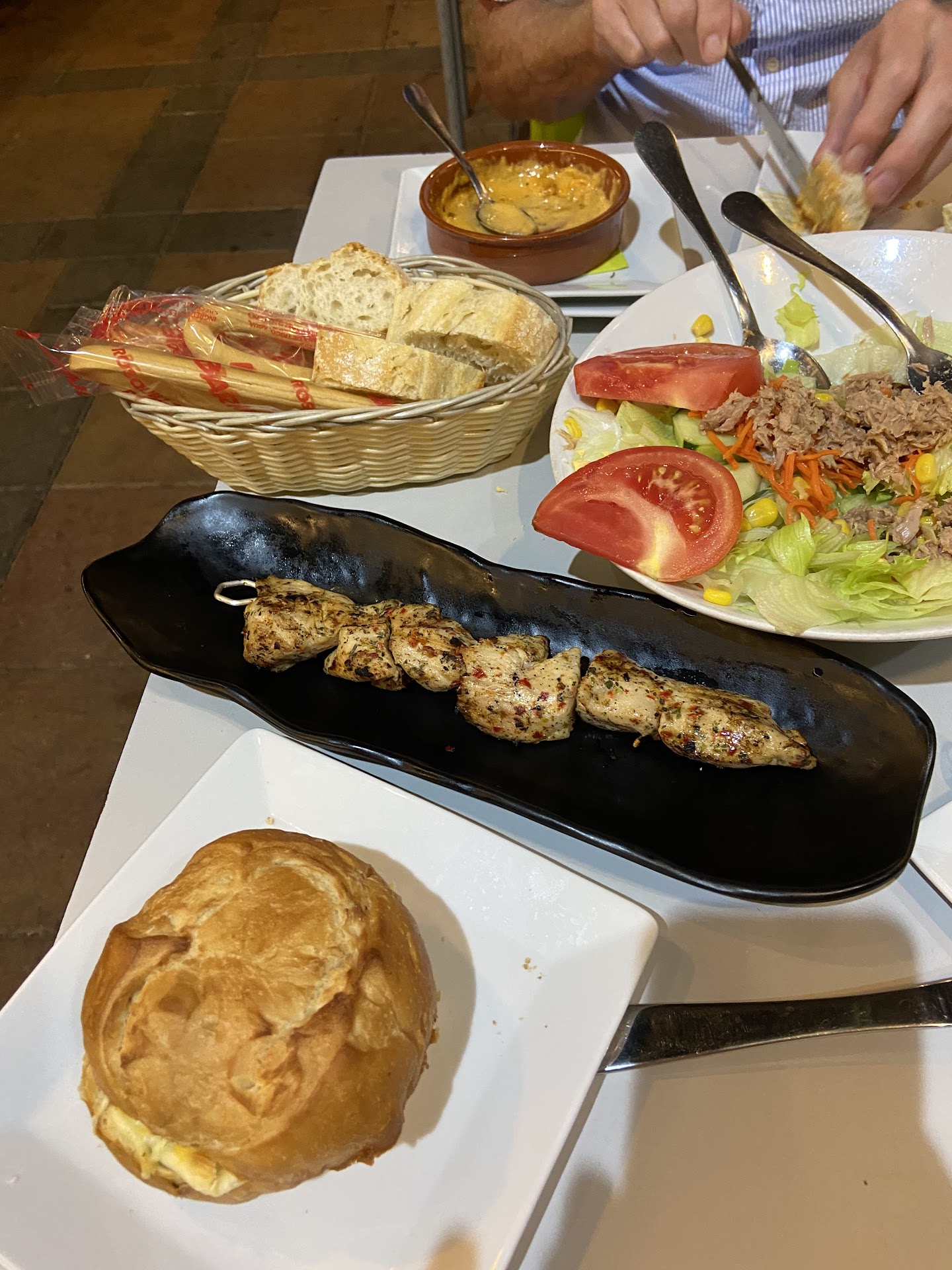 Fuimos a anoche a cenar y la camarera que nos comandó la comida parecía que le pagaban por ser desagradable más que por atender a los clientes y que tengan una buena y satisfactoria velada. Más que ayudar al cliente parecía que estaba en conflicto con ellos, sería, borde, cortante, con malas caras, apoyada, dejándose caer sobre una de los muros mientras nos atendía…y esto no es todo…después de tomar nota regresó en varias ocasiones diferentes para avisar de que no le quedaban platos que habíamos pedido, traían comida sin aún poner cubiertos, una botella de agua la tuvimos que pedir reiteradas veces, junto con un vaso vacío la cual no llegaron nunca, el pan también lo pedimos en varias ocasiones y a diferentes camareros y lo trajeron casi acabado la cena, las patatas fritas que pedimos estaban negras y con sabor a pescado y las bravas tuvimos que decirle que estaban malas, tanto al tacto como al sabor estaban rancias y recalentadas, como si las estuvieran utilizando del día anterior. Cuando le explicamos cómo estaban las bravas su respuesta fue “que si que no te han gustado, que quieres que haga?” Amablemente le pedimos que se la llevase y con mala gana las recogió de la mesa y las tiro directamente en una especie de cubo donde tiraba, literal, todos los platos y cubiertos sucios. A la hora de pagar cobraron tanto las bravas como una de las botellas de agua que no llegaron y esta comenzó a discutirnos que si había llegado y con comentarios burlescos. Cuando marchamos y le dijimos adiós y gracias se limitó a mirarnos y no contestarnos. En definitiva,...