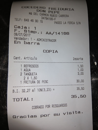 Read moreLa verdad que tenia grandes expectativas sobre este sitio y la reputación que aquí tiene. Hemos ido a picar algo y la terraza vacía, algo la verdad cuando te mueves en estos mundos del degusteo esclarecedor. Atención poco profesional, le pido un tercio de Mahou y me dice que no sabe si tiene o no, y me saca estrella y Heineken, diciéndome que la mahou se le ha terminado. Carta variada aunque con una presentación del año de la guerra. Una de cazón, una de gambon, dos tigres sabiendo que es imposible comerlos sin ser congelados, una de sepia y como no la típica ración de calamares. Todo absolutamente todo lo que nos han sacado y al resto de las mesas que han ido llegando con lechuga. Aun me pregunto el porque. La sepia había que buscarla entre las hojas de lechuga, el cazón quemado aunque no estaba malo de sabor la verdad, los calamares cortados con maquina pues estaban perfectamente estructurados y con un corte preciso y los gambones ricos de sabor aunque fríos al igual que la sepia. Y todo eso estando tres mesas solo en la terraza y el resto del local vacío. Por lo que, aunque de precio no esta mal la calidad el trato y la profesionalidad en el resto dejan mucho que desear, siendo este un sitio de referencia en los alcázares y los alrededores. Nada aconsejable o es que estoy acostumbrado a algo mas de materia buena, gusto en la presentación y un toque más allá que el hacer dinero a costa de los que veraneamos y estamos expectantes de descubrir algo nuevo haya donde vamos. Así que lo dicho, no creo que vuelva a este sitio muchas veces más ni que...